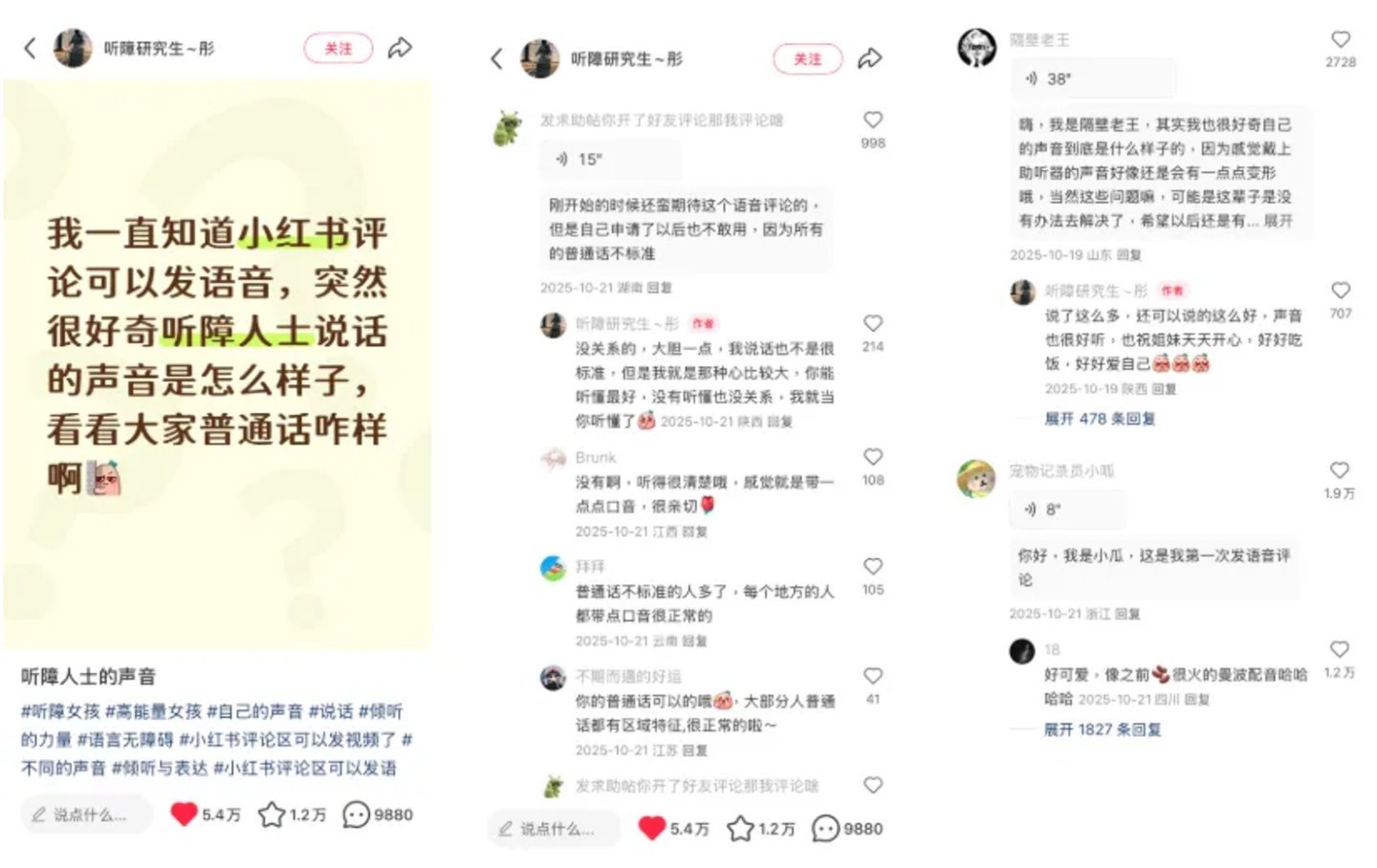 图源:小红书用户@听障研究生~彤@隔壁老王等