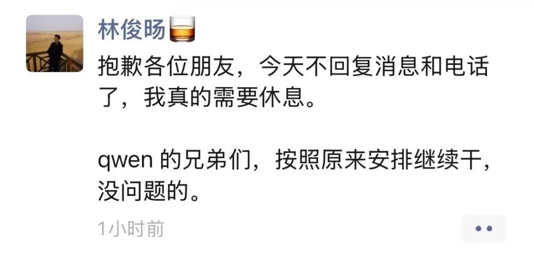 当天下午,林俊旸又在朋友圈对此事作了简单回应。