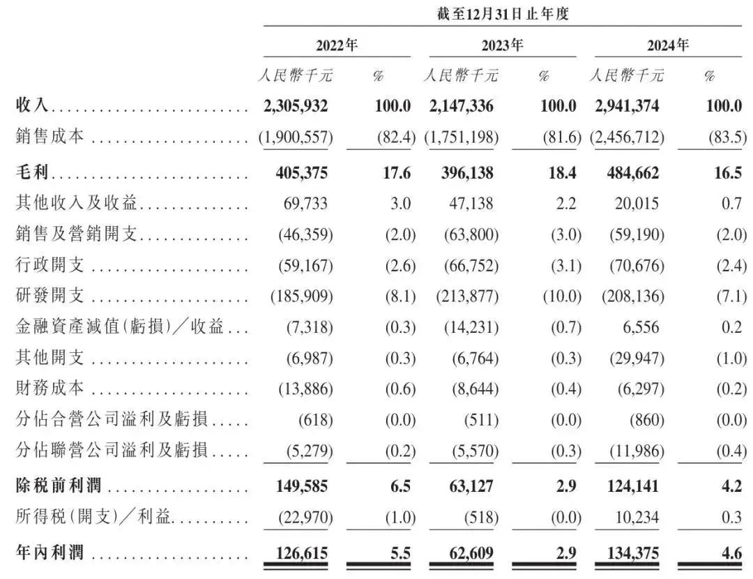 美格智能2022年、2023年、2024年年内利润分别为1.27亿元、6261万元、1.34亿元;经调整净利分别为1.35亿元、6539万元、1.45亿元。