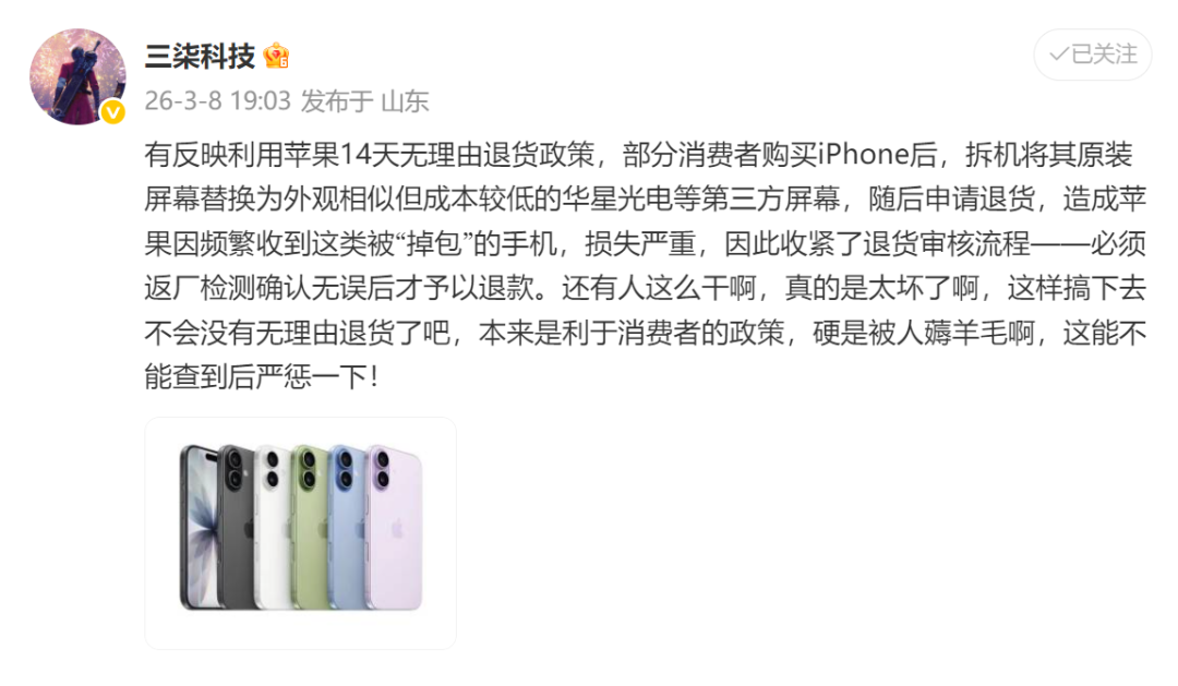 所以啊,苹果要是真想治本,光靠收紧退货政策、加强技术封堵,恐怕还不够。