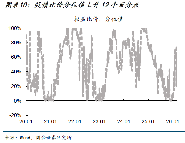 ④ 债基止盈压力(中性):2026年2月债市收益率先下、后上、再下行,2月债基止盈压力较1月大幅下降30个百分点至30%,对应过去一年分位值下降46个百分点至55%,由过热区间回落至中性区间。