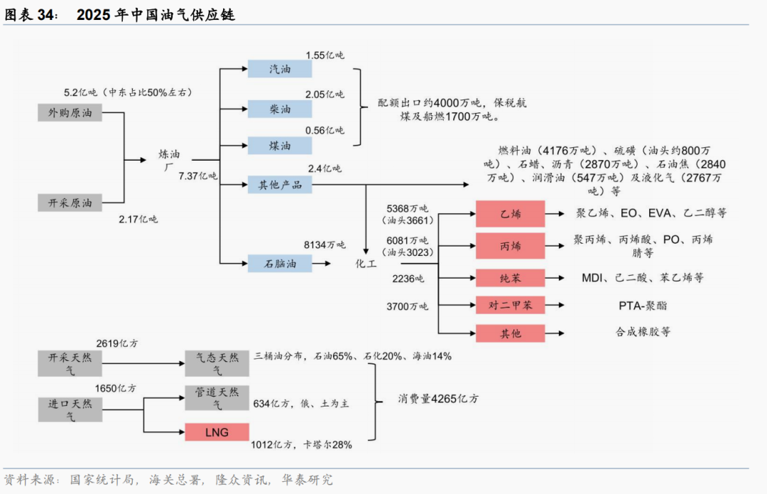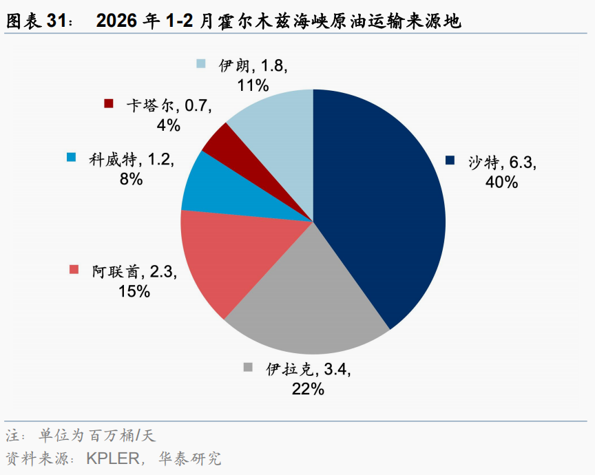 石油石化:霍尔木兹海峡封锁风险加剧全球能源供应链脆弱性,原油及化工品价格面临显著上行风险。基准情景下,布伦特油价中枢或上移至78美元/桶;若设施遭不可逆损毁,油价可能冲击95美元/桶高位。中国依托完善的能源储备体系与多元化的供应保障能力,可通过释放战略库存、削减成品油出口、提升煤化工替代及拓展非中东进口来源等措施有效对冲外部冲击。在此背景下,具备全产业链一体化优势、资源自给率高及低成本煤制烯烃能力的龙头企业或将充分受益于高油价环境,盈利确定性与防御性凸显。