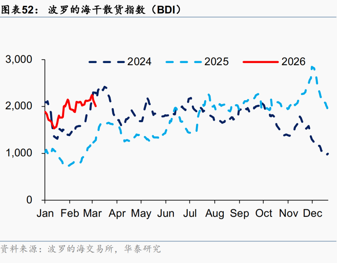 电新&煤炭:能源价格冲击差异化显现,中国凭借前瞻的能源安全布局与充足的库存储备,煤价中枢有望稳定在750元/吨附近,显著优于海外市场。油气价格中枢上移反而强化新能源经济性优势:电动重卡平价优势扩大,光储项目回报率提升2.1-7.7个百分点,且油价上涨对风光锂储制造成本影响微乎其微。高油价环境加速终端用能结构转型,同时疆煤产能释放与印尼增产弹性形成有效供给补充,传统能源保供能力与新能源替代进程同步推进,能源体系韧性凸显。