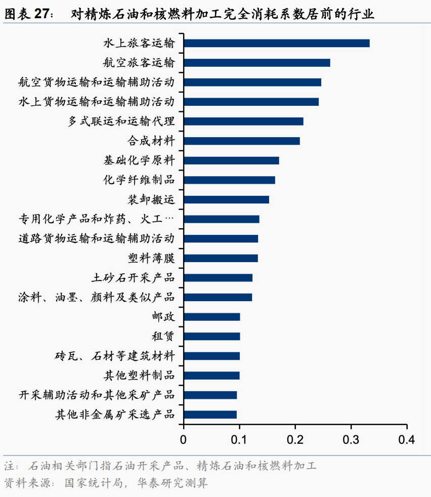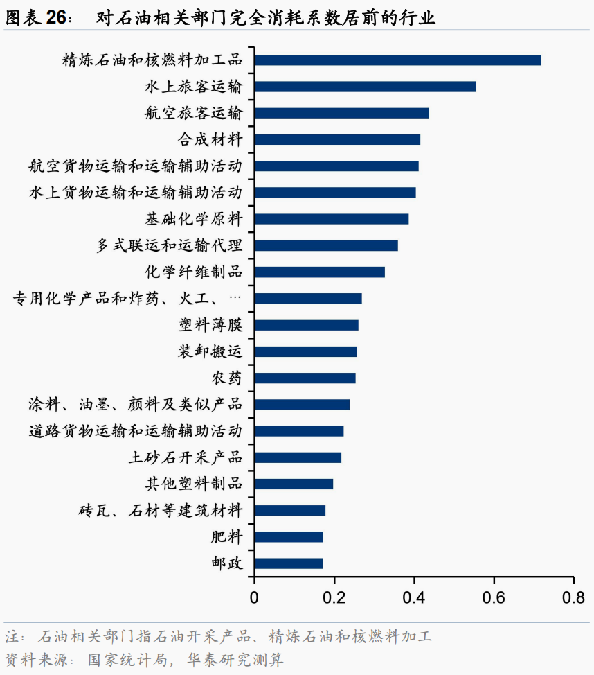 行业层面,通过各行业对石油相关部门的完全消耗系数,量化评估了油价变动对211个细分行业的盈利影响,发现除石油炼化外,航空航运、合成材料及基础化工对石油依赖度最高;由于电气化渗透及成本结构差异,公路货运受冲击程度低于航运。然而,成本压力仅是单维度考量,我们进一步引入感应度系数与影响力系数来评估行业的顺价能力与竞争格局。综合成本敏感度、传导效率及政策约束,我们识别出四类受益/抗压行业:一是石油及天然气开采等直接受益板块;二是煤炭、新能源车及绿电等表现出强替代效应的领域;三是如油服、水泥、化学原料等顺价能力较强的板块,其毛利率对油价具备正向β系数;四是养殖、零售等对油价不敏感的防御性必需消费品。