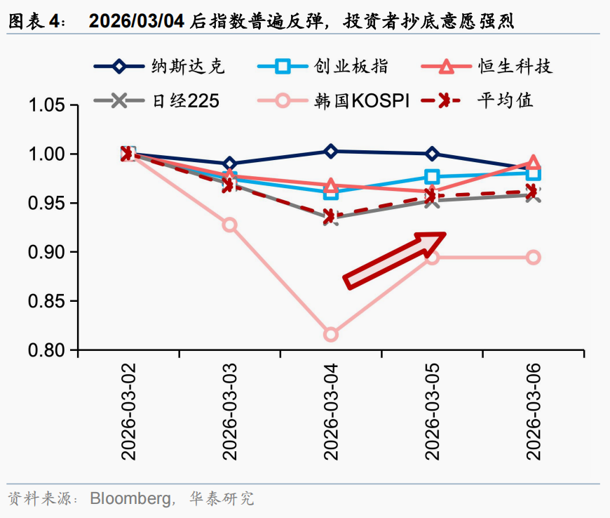 这种定价下,市场风险是不对称的。1)如果地缘冲突月内结束,基本符合市场当前预期。当前仓位偏重和回撤不多,意味着反弹程度也不会太高。2)但如果油价维持高位的时间超过预期,市场面对的重配置空间则会较大。