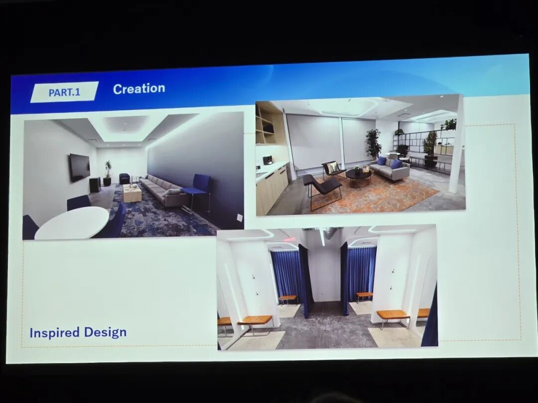 在底部的三张图片中,大家可以看到不同阶段的施工情况:第一张是石膏板安装阶段;第二张是电力接入和场地安装完成后的状态;最后一张则是建成后的效果。在场地搭建期间,我们每周都会与顾问和承包商召开会议。同时,我也在同步进行人员招聘,逐步搭建团队,并开始设计我们的工作流程,规划未来希望实现的目标。