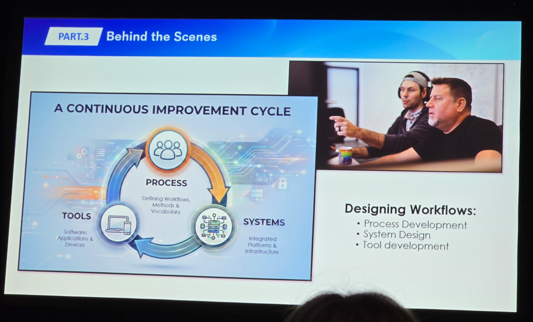 需要说明的是,我们每天都在生成 TB 级别的数据。如何聚合这些信息,并在艺术家、舞台和剪辑交付流程中有效利用它,是一个巨大的挑战。如果缺乏良好的管理方式,整个过程将变得极其复杂。这正是我们提出“有意图的信息管理”的原因。