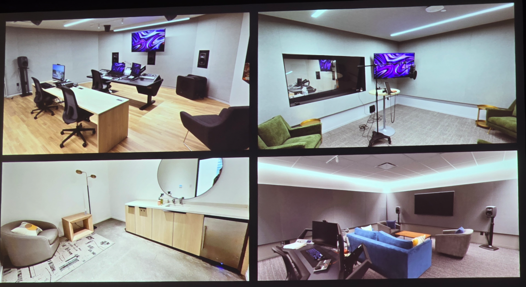 大家现在看到的只是建筑的南半部分;北半部分则设有厨房、若干工作站以及剪辑室。这里还有我们的录音棚,其中包括配音间,后续的幻灯片中会展示更多细节。