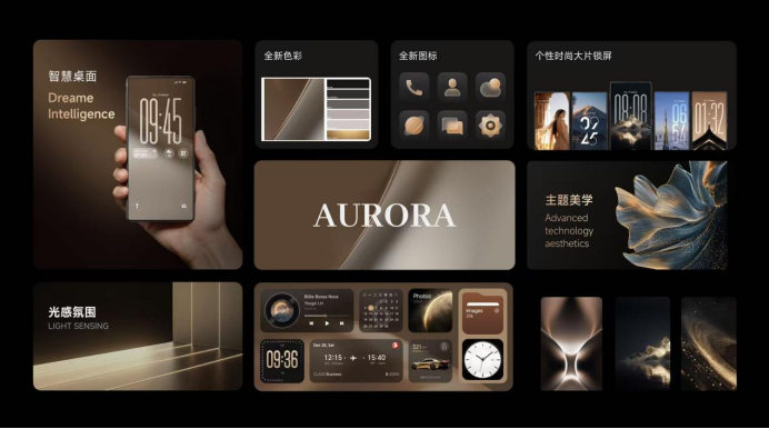 值得一提的是,追觅AURORA手机还具备AI美学设计功能,可根据个人纪念日,自动找出最开心的日子里的点滴回忆,作为动态主题和壁纸,每小时变换;另外,每次解锁手机,AURORA AIOS 1.0会同步分析用户当前情绪,推送适合当前心情的美学主题和壁纸,实现平复和管理情绪。