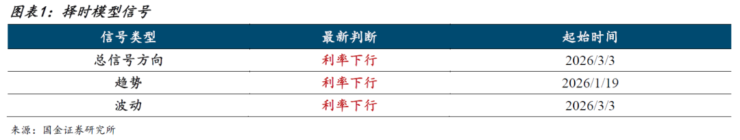 模型信号解读:波动信号由2026年3月3日开始看利率下行,趋势信号由2026年1月19日开始看利率下行,模型总体看利率下行。本信号为量化模型客观运行结果,谨供参考。