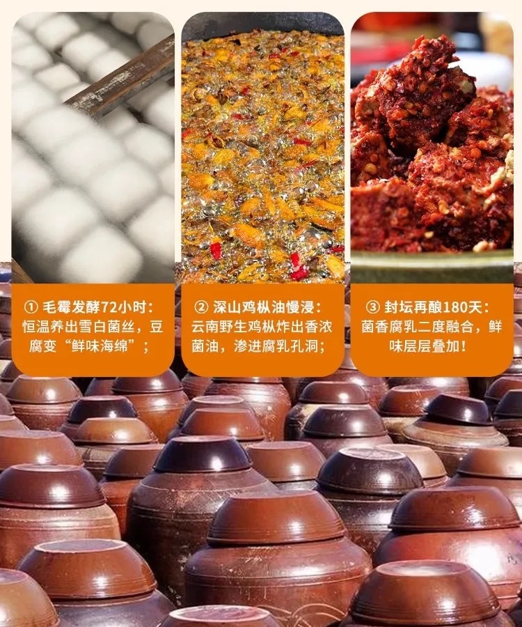 再封坛自然发酵整整180天,让腐乳吸饱鸡枞魂,一开盖香气直接冲出来,这是普通腐乳比不了的。