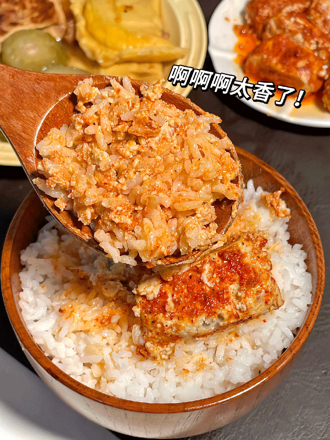 挖一勺,连油带腐乳在饭上拌匀,每一粒米都裹上油润鲜香,堪称“米饭消失术”。