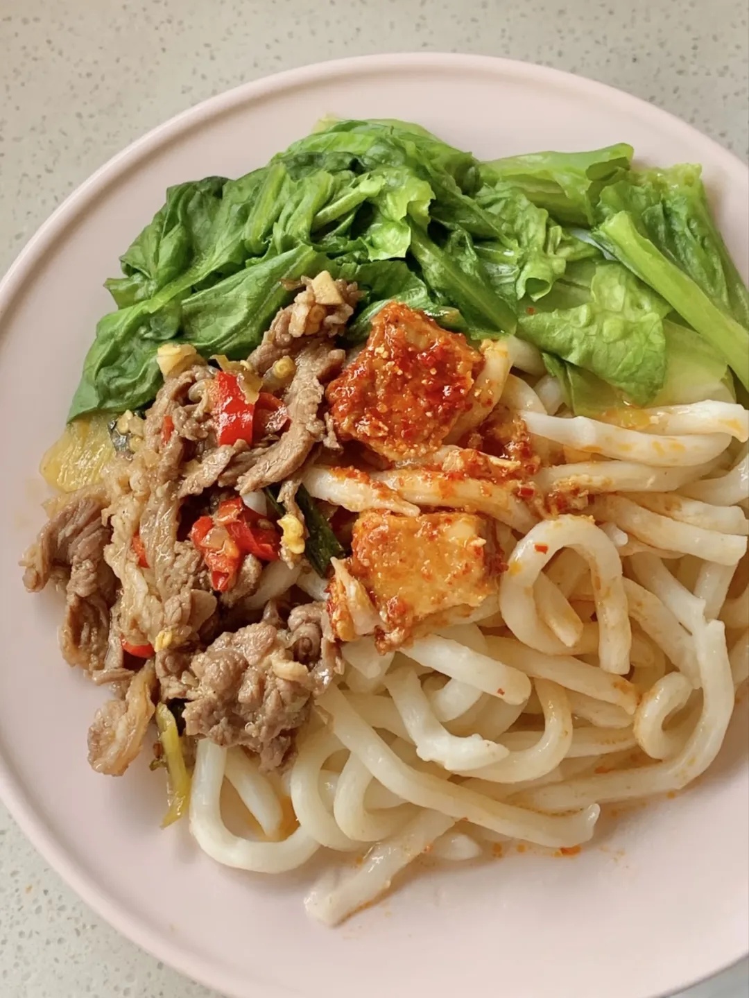 煮好的面条或米粉,直接加两勺腐乳和少许汤汁。那股鲜辣入味,比很多牛肉酱、拌面酱还上头!