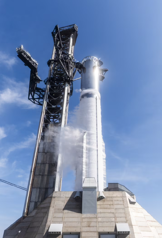 当地时间周一(3 月 16 日),该公司对星舰的“超重型助推器”第一级进行了静态点火测试:火箭固定在得克萨斯州南部 SpaceX 星舰基地的 2 号发射台,短暂点燃了助推器的发动机。