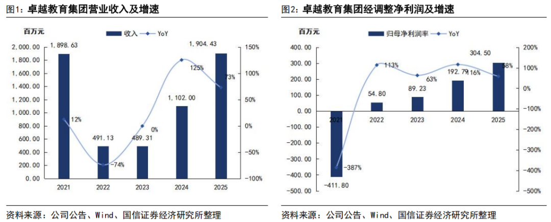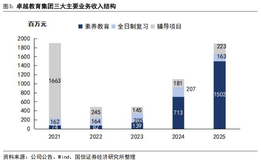 2025年公司收入、业绩维持快速增长。2025年,公司实现营收19.04亿元/+72.8%;实现经调整净利润3.05亿元/+57.9%,营收及经调整净利润居于此前公司盈利预告中值;2025年公司收入、业绩快速增长,主要系素养教育板块合规转型推进顺利,同时公司优质的教学质量与服务能力也为增长提供了坚实基础。但另一方面公司经调净利润要低于我们此前预期(3.4亿元),考虑主要是深圳、佛山市场竞争较激烈,对公司课程产品定价有一定影响。