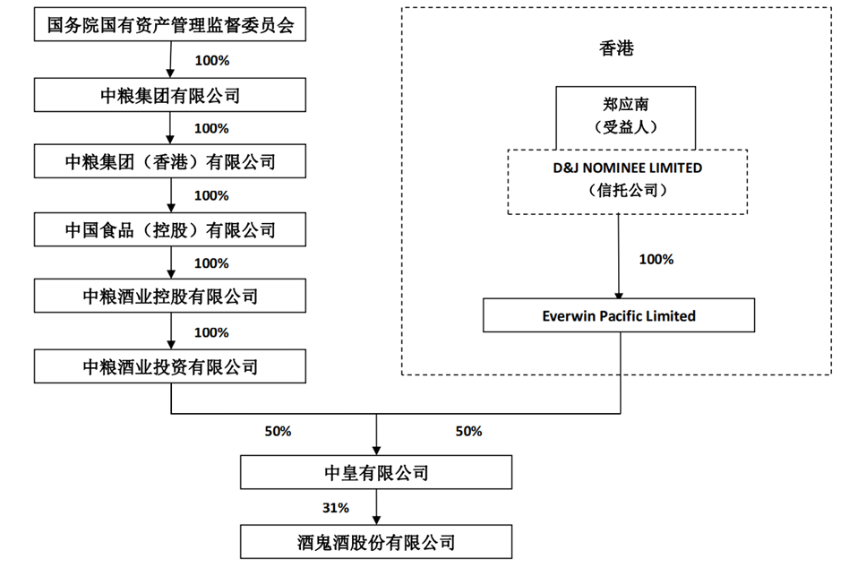 2006年底,原内贸部背景的华孚集团,与香港“免税店大王”郑应南控制的Everwin Pacific的合资公司中皇公司,接手重组酒鬼酒,使其重回国资序列。2014年,中粮集团整体兼并华孚,酒鬼酒正式进入宁高宁在中粮期间主导的“从田间到餐桌”全产业链的一环。