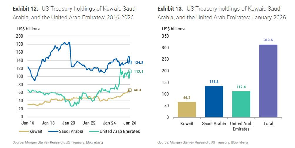 科威特、沙特阿拉伯与阿联酋三国今年1月合计持有约3130亿美元美国国债,且三国持仓自2022年以来均有所增长。