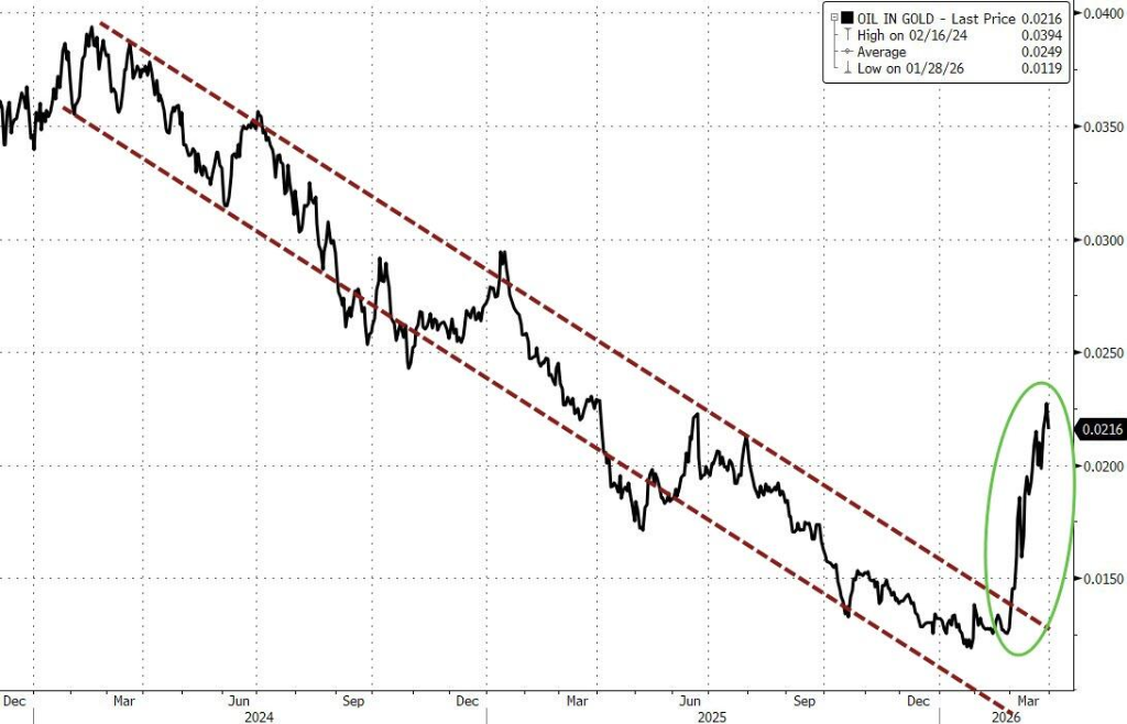 (以黄金计价的原油价格3月大幅上涨)