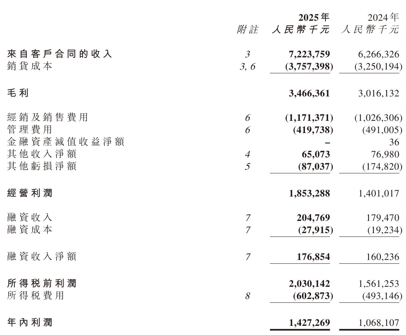 卫龙美味2025年运营利润为18.53亿元,较上年同期的14亿元增长32.4%;年内利润为14.27亿元,较上年同期的10.68亿元增长33.6%。