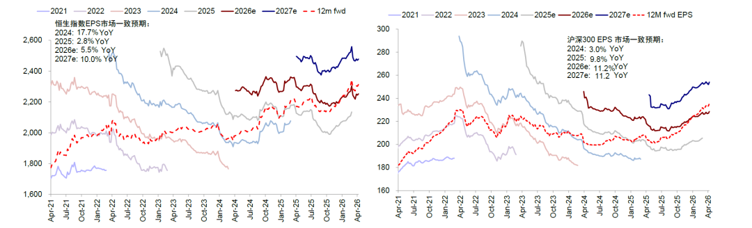 ► 基准情形下,当前市场一致预期预计美股盈利2026年增速18.2%,A股11.2%,港股5.5%。局势不再升级是关键前提,此时盈利的决定因素将回归中美各自信用周期和产业趋势。