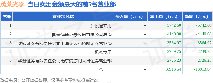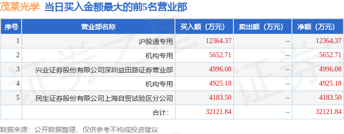证券之星消息,沪深交易所2026年4月17日公布的交易公开信息显示,茂莱光学(688502)因有价格涨跌幅限制的日收盘价格涨幅达到15%的前五只证券登上龙虎榜。此次是近5个交易日内第1次上榜。