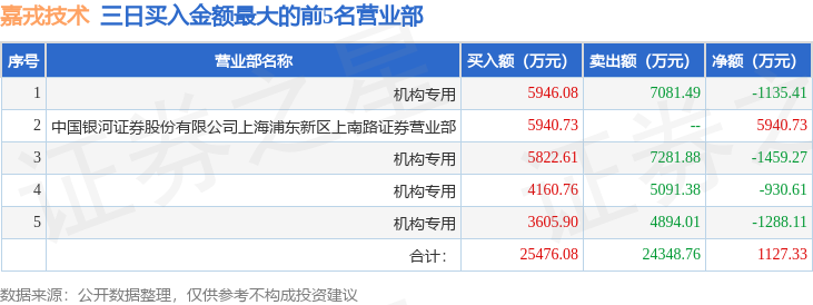 从龙虎榜公布的三日买卖数据来看,机构合计净卖出4813.41万元。