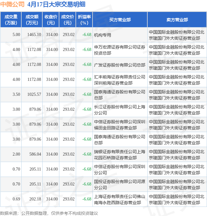 证券之星消息,4月17日中微公司发生大宗交易,交易数据如下: