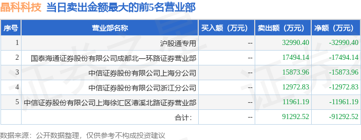 证券之星消息,沪深交易所2026年4月17日公布的交易公开信息显示,晶科科技(601778)因有价格涨跌幅限制的日换手率达到20%的前五只证券登上龙虎榜。此次是近5个交易日内第3次上榜。