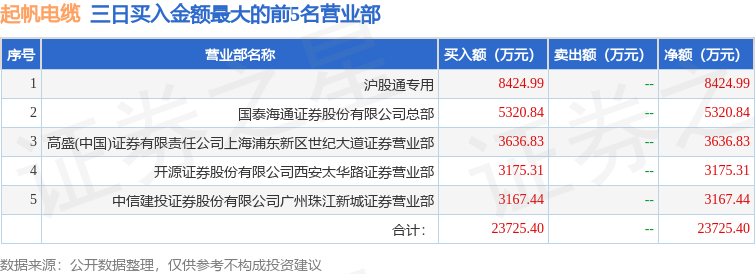 证券之星消息,沪深交易所2026年4月17日公布的交易公开信息显示,起帆电缆(605222)因非ST、*ST和S证券连续三个交易日内收盘价格涨幅偏离值累计达到20%的证券登上龙虎榜。此次是近5个交易日内第2次上榜。