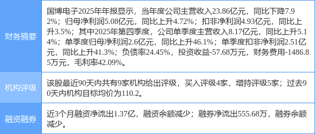 今日国博电子(688375)涨6.43%,收盘报135.05元。