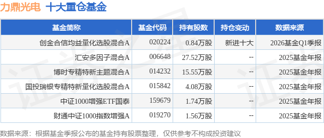 重仓力鼎光电的公募基金请见下表: