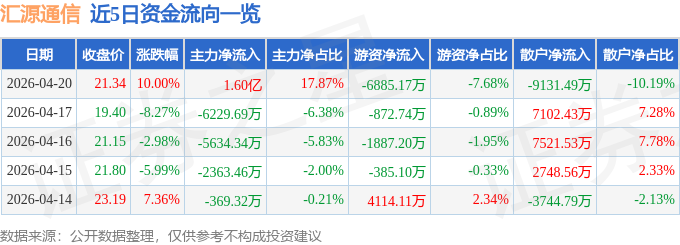 4月20日的资金流向数据方面,主力资金净流入1.6亿元,占总成交额17.87%,游资资金净流出6885.17万元,占总成交额7.68%,散户资金净流出9131.49万元,占总成交额10.19%。