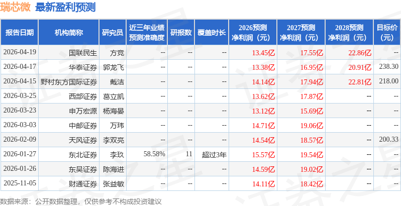 最新盈利预测明细如下: