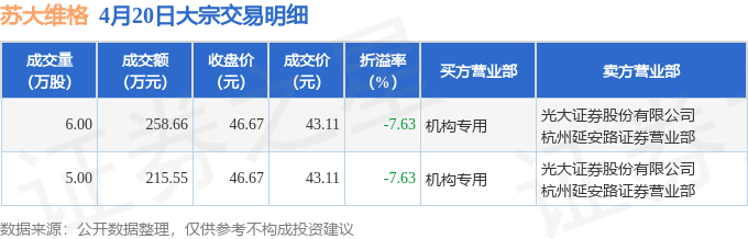 证券之星消息,4月20日苏大维格发生大宗交易,交易数据如下:
