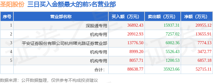 证券小知识:龙虎榜是交易所披露的竞价交易公开信息,现身龙虎榜的个股都是当日最为活跃的个股,是投资者日常重点关注的数据。交易所公布当日买入金额和卖出金额前五名的席位,其中一些席位代表特殊意义,如机构专用席位是指基金专用席位、券商自营专用席位、社保专用席位、券商理财专用席位、保险机构专用席位、保险机构租用席位、QFII专用席位等机构投资者买卖证券的专用通道和席位。深股通专用、沪股通专用为北向资金的交易席位。