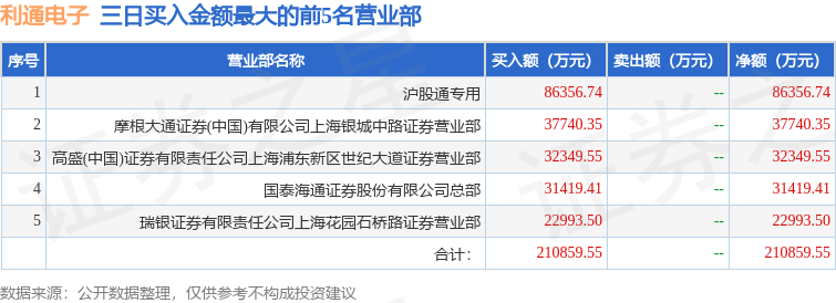证券小知识:龙虎榜是交易所披露的竞价交易公开信息,现身龙虎榜的个股都是当日最为活跃的个股,是投资者日常重点关注的数据。交易所公布当日买入金额和卖出金额前五名的席位,其中一些席位代表特殊意义,如机构专用席位是指基金专用席位、券商自营专用席位、社保专用席位、券商理财专用席位、保险机构专用席位、保险机构租用席位、QFII专用席位等机构投资者买卖证券的专用通道和席位。深股通专用、沪股通专用为北向资金的交易席位。