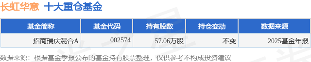 根据2025基金年报公募基金重仓股数据,重仓该股的公募基金共1家,其中持有数量最多的公募基金为招商基金的招商瑞庆混合A。招商瑞庆混合A目前规模为3.28亿元,最新净值1.0986(4月17日),较上一交易日上涨0.1%,近一年上涨7.64%。该公募基金现任基金经理为余芽芳 王垠。余芽芳在任的基金产品包括:招商瑞文混合A,管理时间为2019年9月11日至今,期间收益率为30.01%;招商瑞恒一年持有期混合A,管理时间为2020年5月22日至今,期间收益率为21.81%;招商瑞信稳健配置混合A,管理时间为2020年6月2日至今,期间收益率为32.11%。王垠在任的基金产品包括:招商瑞锦回报债券A,管理时间为2025年8月18日至今,期间收益率为1.67%。