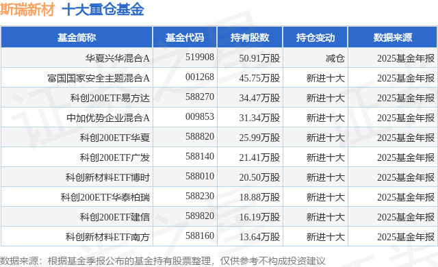 根据2025基金年报公募基金重仓股数据,重仓该股的公募基金共23家,其中持有数量最多的公募基金为华夏基金的华夏兴华混合A。华夏兴华混合A目前规模为6.88亿元,最新净值3.69(4月17日),较上一交易日上涨0.44%,近一年上涨46.54%。该公募基金现任基金经理为阳琨。