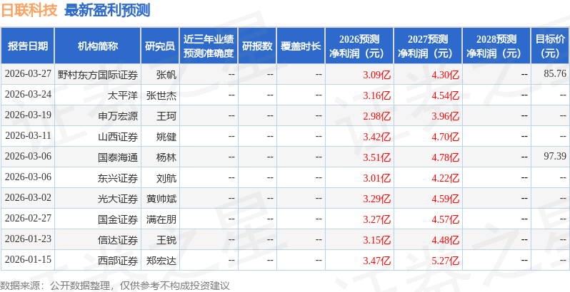 最新盈利预测明细如下: