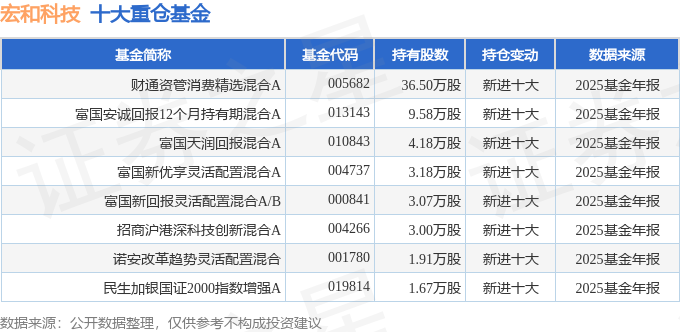持有宏和科技最多的基金为财通资管消费精选混合A,目前规模为2.3亿元,最新净值2.7492(4月16日),较上一交易日上涨1.25%,近一年上涨116.08%。该基金现任基金经理为于洋。