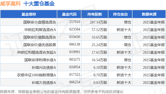 重仓威孚高科的公募基金请见下表: