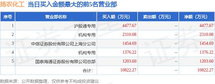证券小知识:龙虎榜是交易所披露的竞价交易公开信息,现身龙虎榜的个股都是当日最为活跃的个股,是投资者日常重点关注的数据。交易所公布当日买入金额和卖出金额前五名的席位,其中一些席位代表特殊意义,如机构专用席位是指基金专用席位、券商自营专用席位、社保专用席位、券商理财专用席位、保险机构专用席位、保险机构租用席位、QFII专用席位等机构投资者买卖证券的专用通道和席位。深股通专用、沪股通专用为北向资金的交易席位。