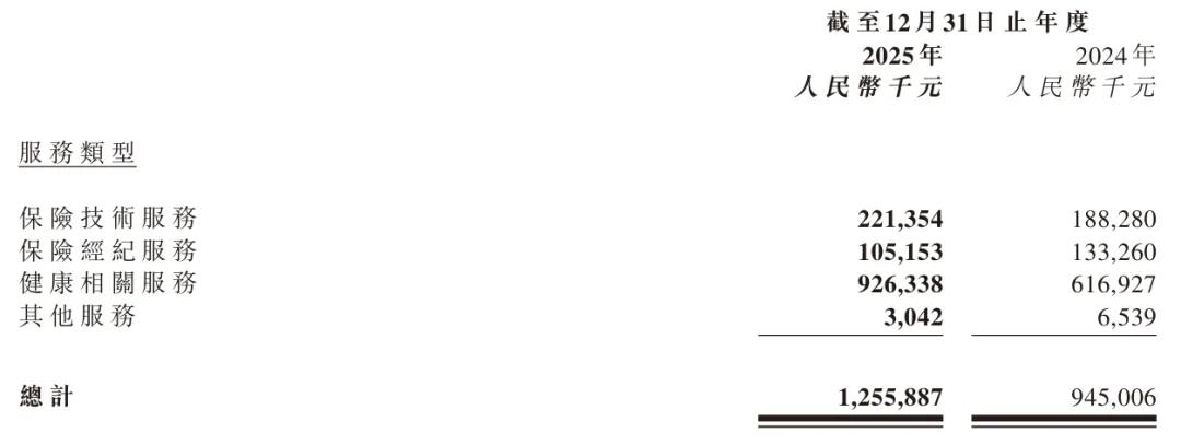 轻松健康2025年保险技术服务收入为2.21亿元,保险经纪服务收入为1.05亿元,健康相关服务收入为9.26亿元。