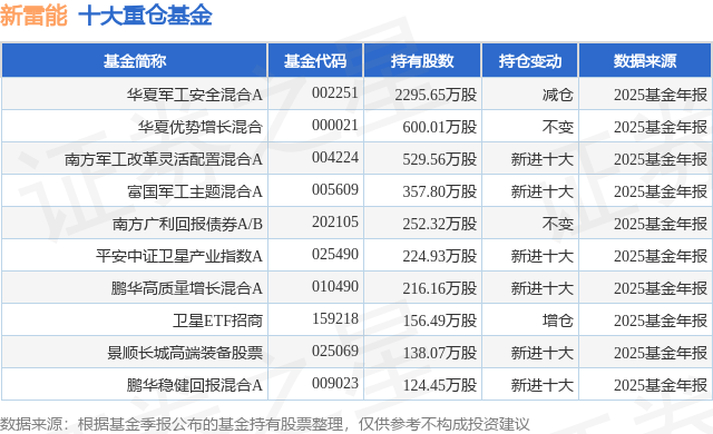 重仓新雷能的前十大公募基金请见下表: