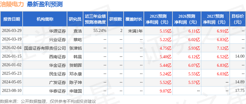 据证券之星公开数据整理,近期涪陵电力(600452)发布2025年年报。截至本报告期末,公司营业总收入29.96亿元,同比下降3.86%,归母净利润3.93亿元,同比下降23.56%。按单季度数据看,第四季度营业总收入7.19亿元,同比上升1.48%,第四季度归母净利润9740.89万元,同比上升3.27%。本报告期涪陵电力公司应收账款体量较大,当期应收账款占最新年报归母净利润比达146.52%。