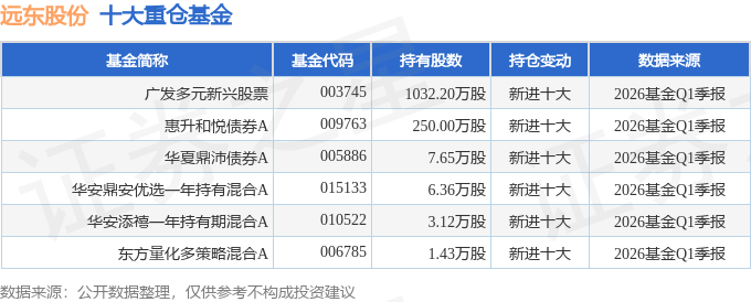 持有远东股份最多的基金为广发多元新兴股票,目前规模为28.33亿元,最新净值2.3145(4月22日),较上一交易日上涨2.2%,近一年上涨52.95%。该基金现任基金经理为周智硕。
