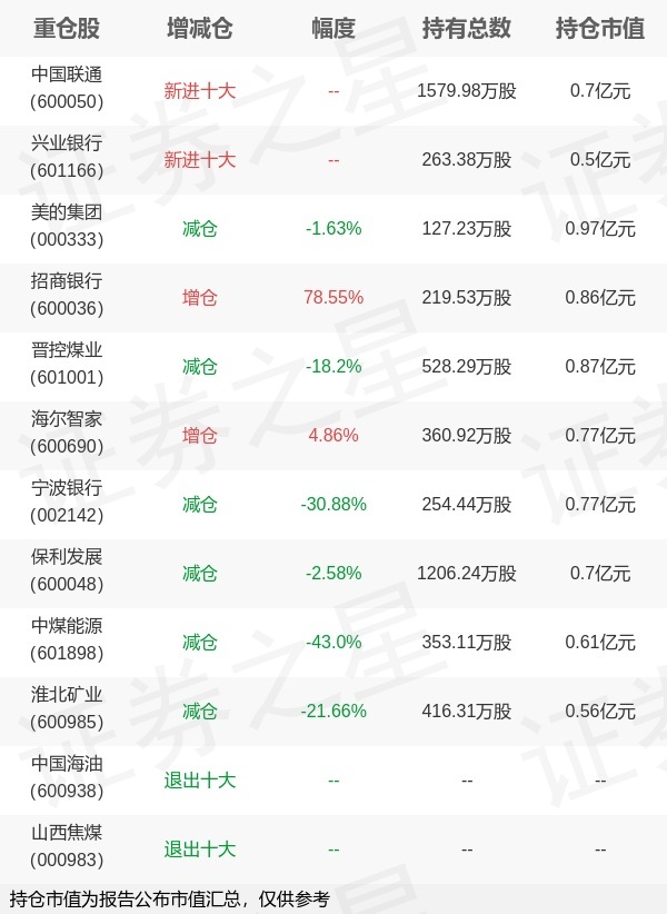 证券之星消息,4月21日安信基金旗下李君管理的安信稳健增值灵活配置混合型基金公布一季报,近1年净值增长率5.86%。与上一季度相比,该基金前十大重仓股新增中国联通,兴业银行;其中美的集团持仓占比1.1%,为该基金第一大重仓股;中国海油,山西焦煤等退出前十大重仓股;详细数据如下:以上内容为证券之星据公开信息整理,由AI算法生成(网信算备310104345710301240019号),不构成投资建议。相关 ETF