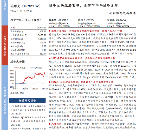 面对2025年前三季度不尽如人意的业绩,开源证券于2025年10月14日发布研报,将当年净利润预测从6.51亿元下调至6.03亿元,但同时将2026年预测从10.97亿元上调至11.10亿元,2027年上调至16.39亿元。理由是“2025年后液冷需求有望贡献较大弹性”。