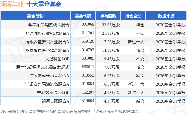 重仓涛涛车业的前十大公募基金请见下表: