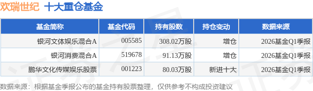 重仓欢瑞世纪的公募基金请见下表: